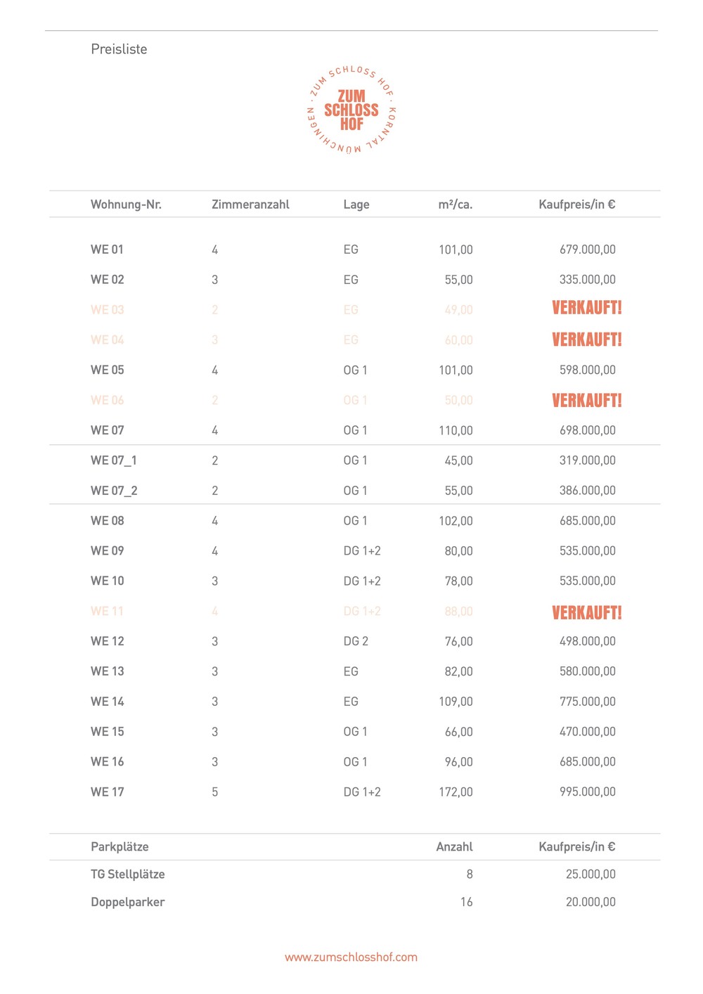 Die inneren Werte des Bauprojekts ZUM SCHLOSS HOF sind ebenso überzeugend wie die Lage und machen das Einziehen zur Freude und das Wohnen angenehm. Die durchdachte und großzügige Raumplanung und Raumaufteilung bringen Struktur und Klarheit. Hochwertige Materialien sorgen für Langlebigkeit.